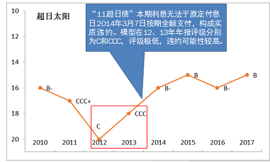 2014-2017年,新光控股财务报表出现明显异常变化,报表质量值得怀疑。财务虚假识别模型显示,新光控股2014-2017年的财务虚假“可能性极大”。对于财务粉饰较为严重的企业,定量评级很可能出现一定偏差,但即便如此,新光控股的模型评级结果总体仍处于较低水平。外部评级之前一直稳定维持在AA及以上,在发生违约后才将评级降至C。